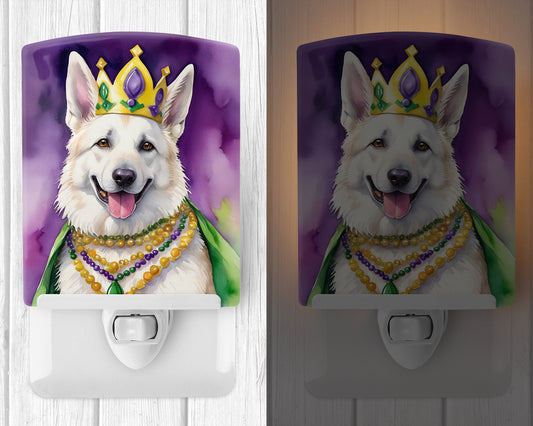 White German Shepherd King of Mardi Gras Ceramic Night Light