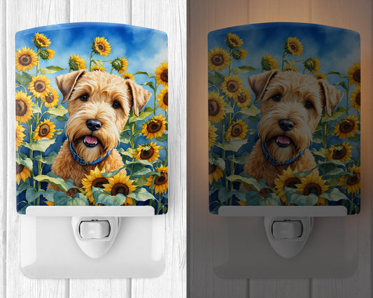 Wheaten Terrier in Sunflowers Ceramic Night Light