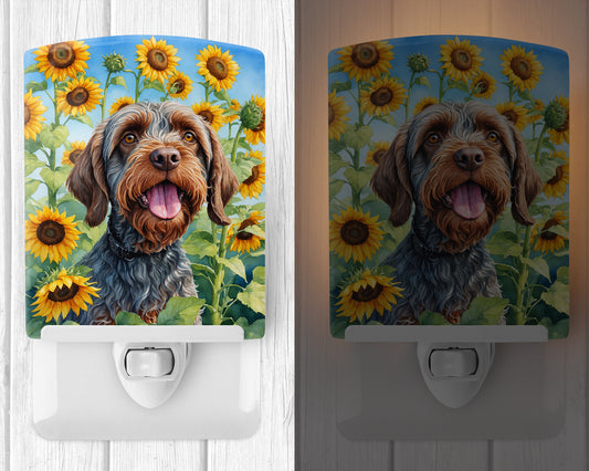 Wirehaired Pointing Griffon in Sunflowers Ceramic Night Light