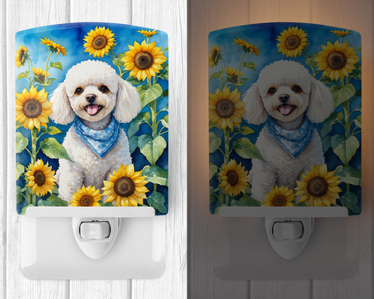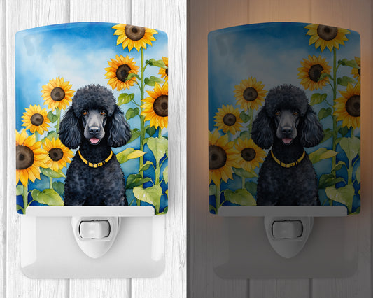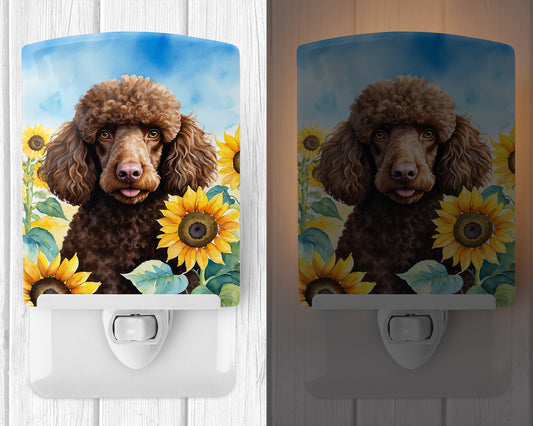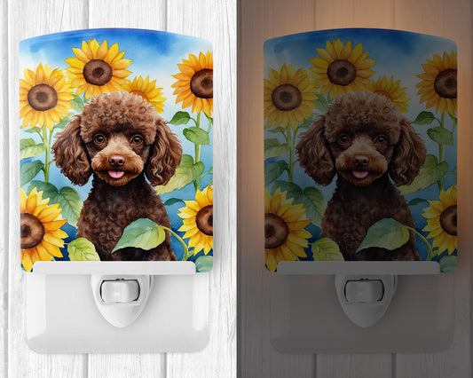 Chocolate Poodle in Sunflowers Ceramic Night Light
