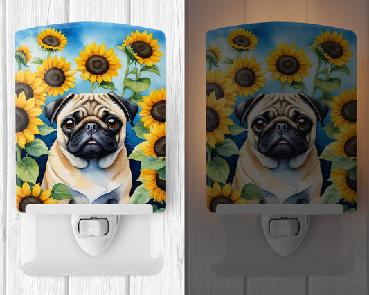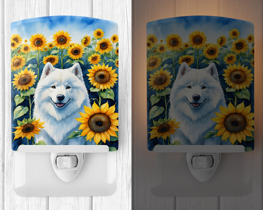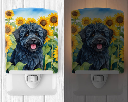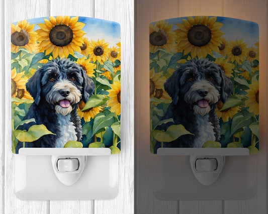 Portuguese Water Dog in Sunflowers Ceramic Night Light