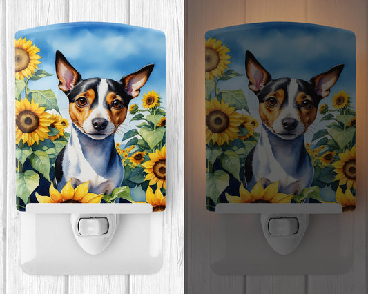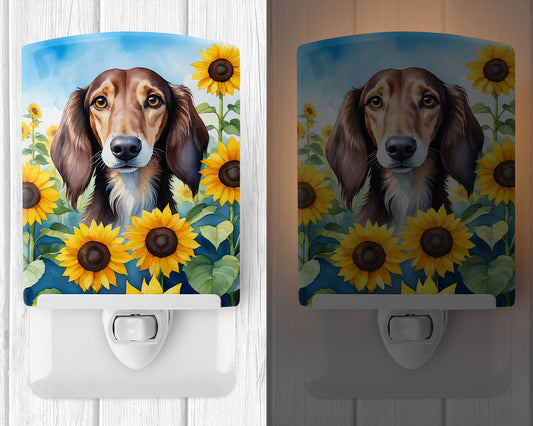 Redbone Coonhound in Sunflowers Ceramic Night Light