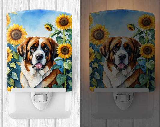 Scottish Deerhound in Sunflowers Ceramic Night Light