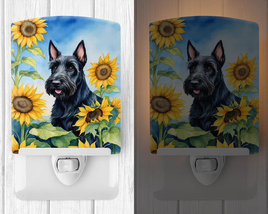 Scottish Terrier in Sunflowers Ceramic Night Light