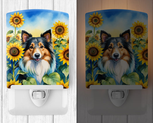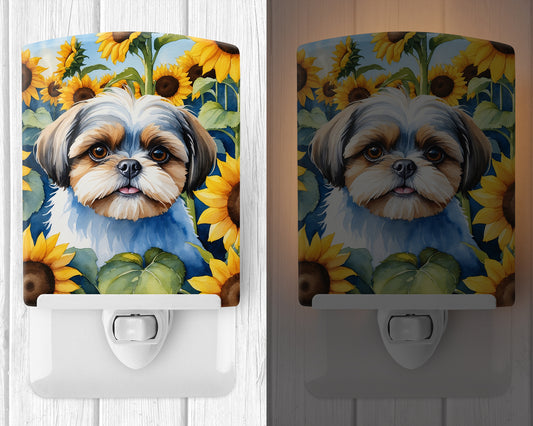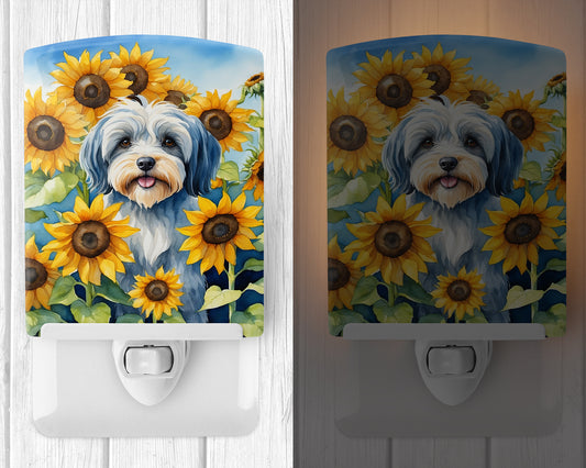 Tibetan Terrier in Sunflowers Ceramic Night Light