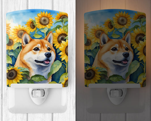Tibetan Spaniel in Sunflowers Ceramic Night Light