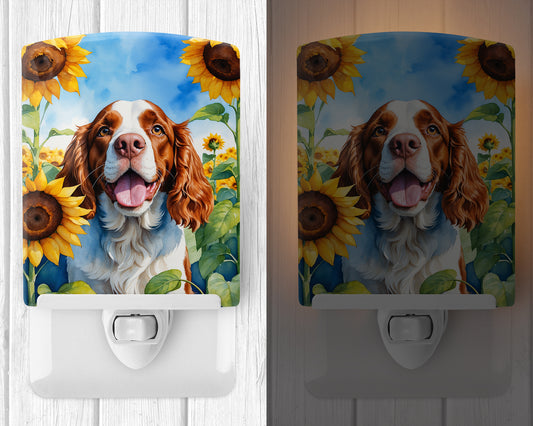 Welsh Springer Spaniel in Sunflowers Ceramic Night Light