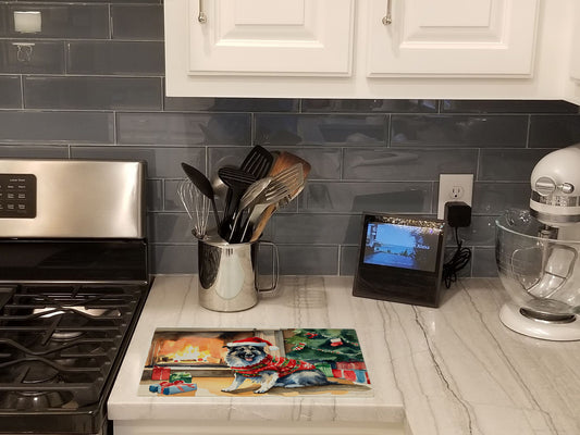 Norwegian Elkhound and Santa Claus Glass Cutting Board