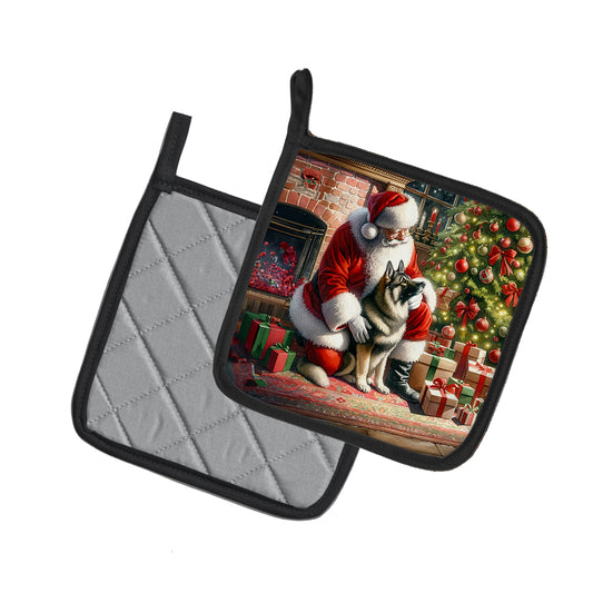 Norwegian Elkhound and Santa Claus Pair of Pot Holders