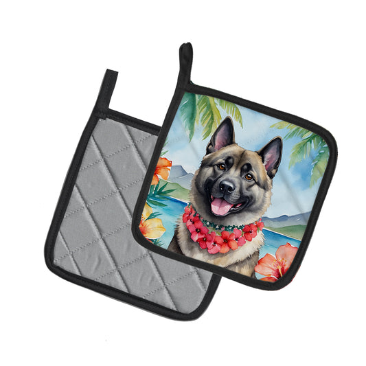 Norwegian Elkhound Luau Pair of Pot Holders