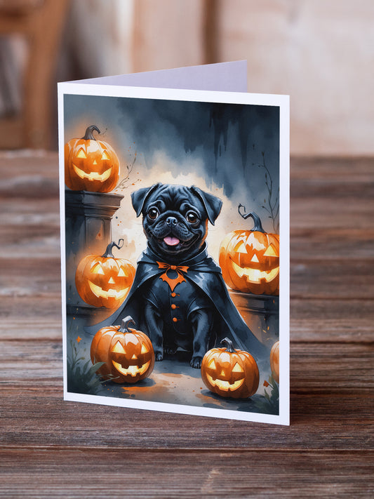 Black Pug Puppy Halloween Greeting Cards Pack of 8