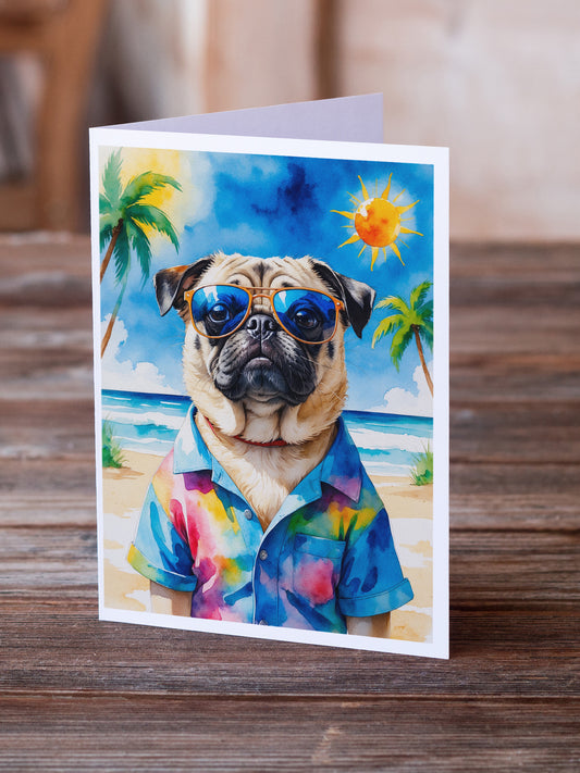 Pug Summer Beach Time Greeting Cards Pack of 8