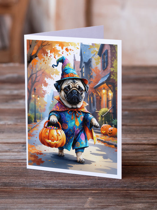 Pug Halloween Trick or Treat Greeting Cards Pack of 8