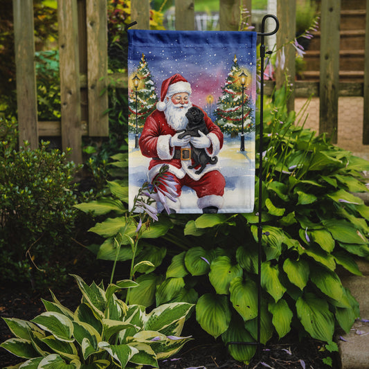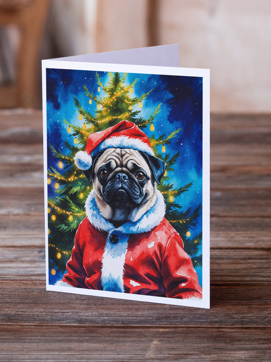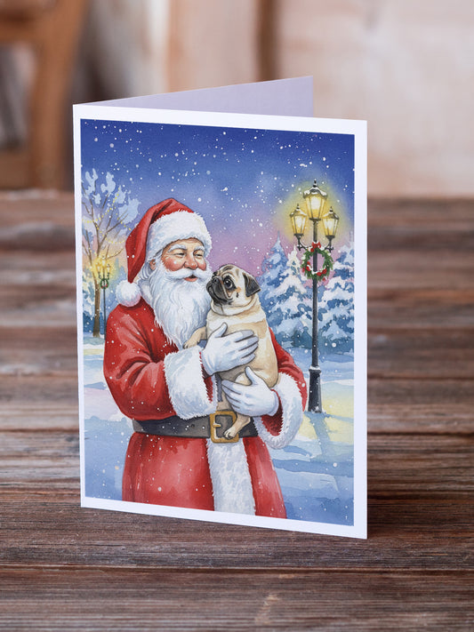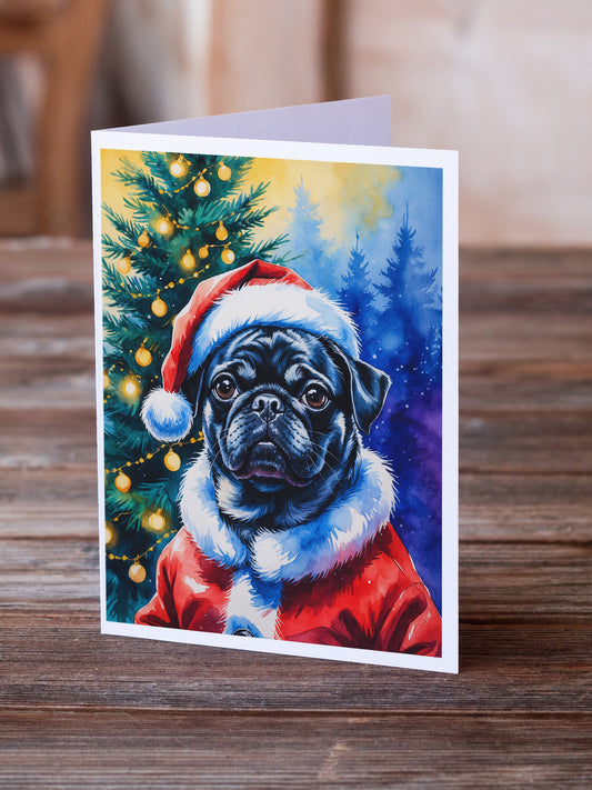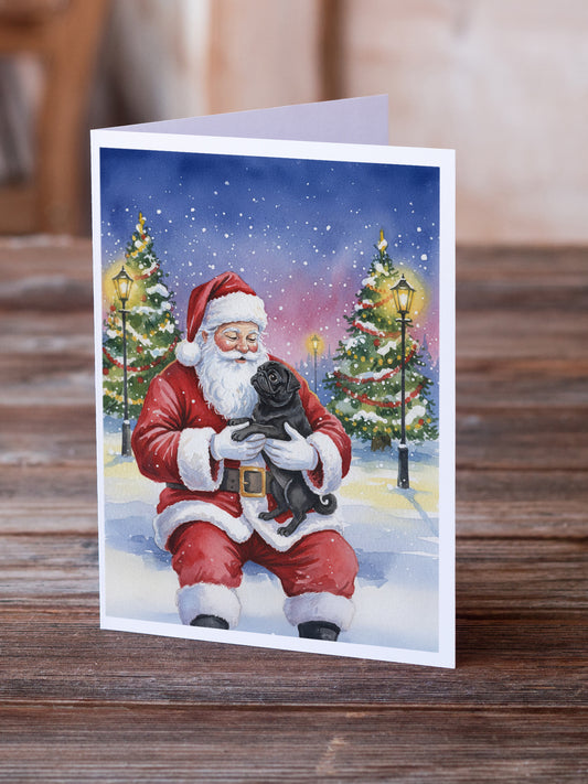 Black Pug with Santa Claus Greeting Cards Pack of 8