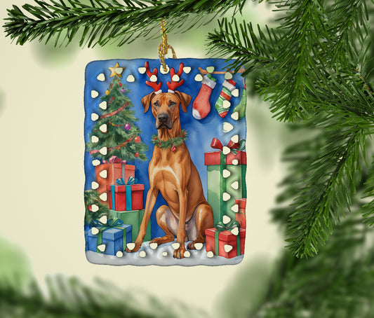 Rhodesian Ridgeback Christmas Reindeer Porcelain Ornament