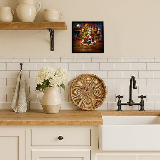 Rhodesian Ridgeback with Santa Claus Framed Metal Print