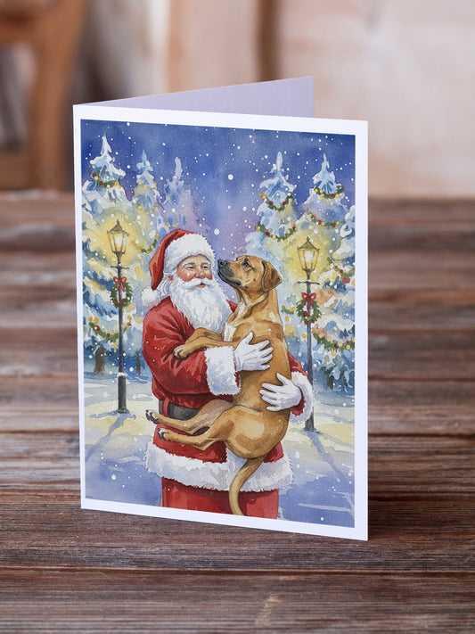Rhodesian Ridgeback with Santa Claus Greeting Cards Pack of 8