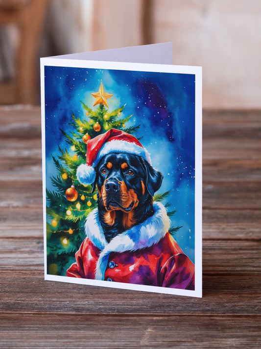 Rottweiler with Santa Claus Greeting Cards Pack of 8