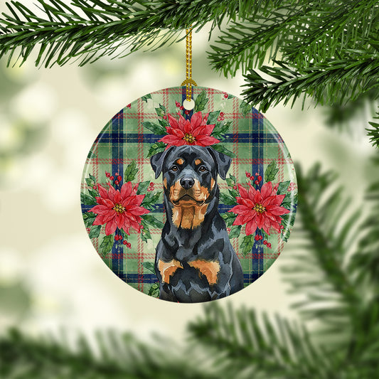 Rottweiler Christmas PoinsettIas Ceramic Ornament