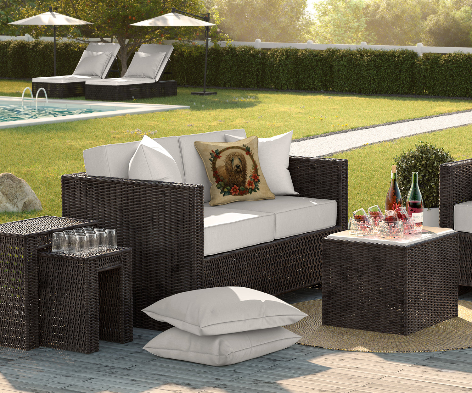 Throw Pillow featuring breed specific Komondor artwork. Celebrate Christmas with this Christmas Pillow. Revitalize your outdoor or indoor living space with Caroline's Treasures 18x18 Fabric Decorative Pillow. With a generously sized dimension of approximately 18 inches by 18 inches, this pillow makes a comfortable and aesthetic addition to any seating area. Made from a unique, water-resistant material developed by Caroline's Treasures, the pillow sham is 100% polyester fabric that's durable and ready to weather any condition. Its vibrant, full-color artwork will not fade over time as it is dyed with color-fast dyes. Whether you place it on your patio furniture, porch, veranda, or indoor couch, its soft canvas fabric ensures a cozy experience. The pillow is handcrafted in the United States, featuring a sham created from three pieces of fabric and a polyester insert for enduring shape and overstuffed comfort. Despite being robustly built to endure the outdoors, it is as soft and snug as your favorite indoor cushions. Please note, as all our pillows are handmade, sizes may vary slightly, adding to the charm of this unique decorative item.