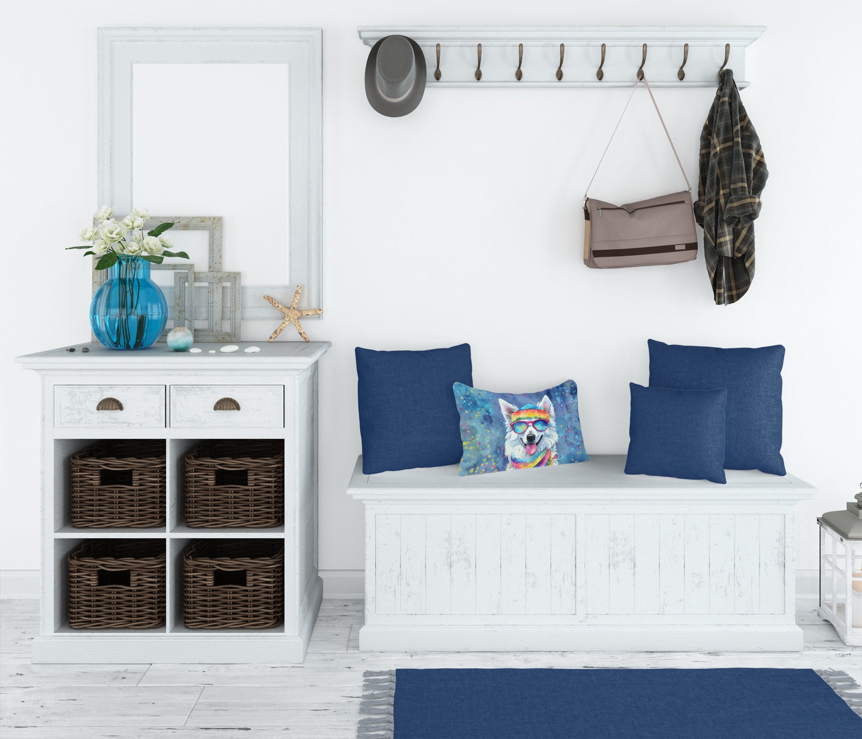 Throw Pillow featuring breed specific American Eskimo artwork. Embrace the fusion of comfort and style with Caroline's Treasures Fabric Decorative Pillow. This 12x16 inch outdoor pillow is designed to complement your patio furniture, adding a splash of color and artistry to your outdoor setting. Constructed with a 100% Polyester Fabric pillow sham filled with a plush pillow form, this cushion is as comfortable as it is durable. Our outdoor pillow utilizes a novel fabric, meticulously woven for enhanced water resistance. This soft canvas material is equally suited for your indoor couch as well as outdoor settings such as the patio, porch, or veranda. To ensure enduring vibrance, we employ colorfast dyes resistant to fading even when subjected to weather elements. The making of this pillow involves the delicate sewing together of three fabric pieces to create a sham, into which a polyester insert is carefully placed. The result is an overstuffed pillow that tenaciously holds its shape. With both the sham and the pillow insert crafted in the United States, these handmade pillows are a testament to superior local craftsmanship. Note that as these pillows are handmade, sizes may slightly vary, enhancing their unique appeal. Enjoy comfort in style with Caroline's Treasures Fabric Decorative Pillow.