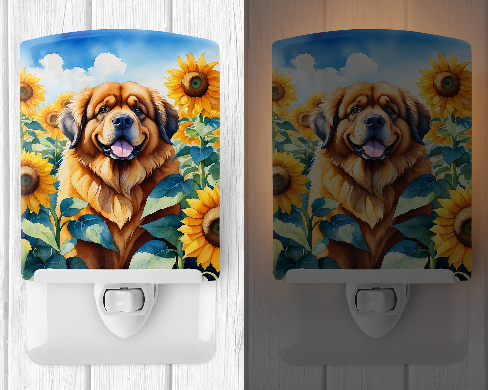 Tibetan Mastiff in Sunflowers Ceramic Night Light