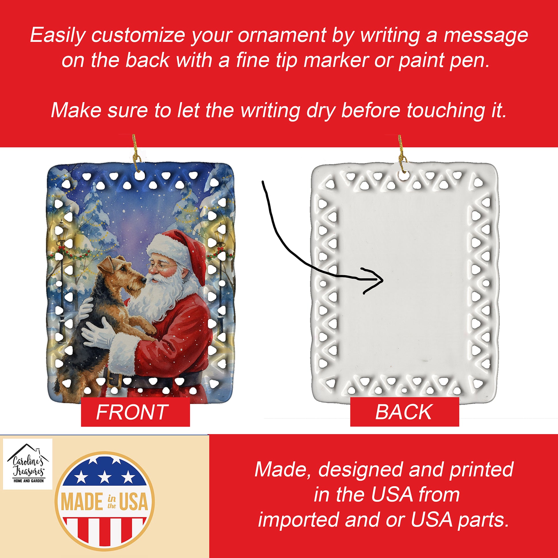 Airedale Terrier with Santa Claus Porcelain Ornament