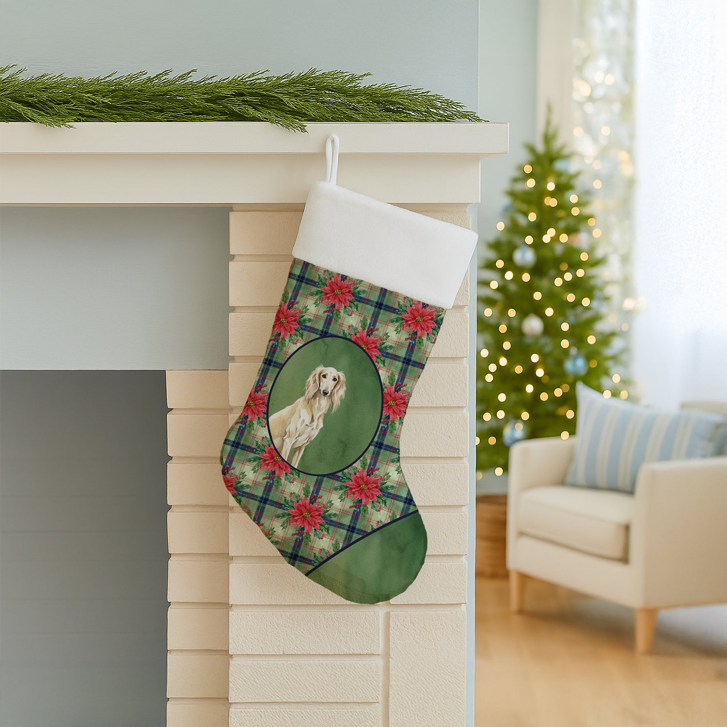 Cream Saluki Christmas PoinsettIas Holiday Stocking